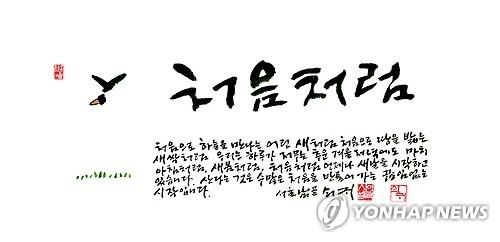 처음처럼은 본래 그가 쓴 책의 제호로 사용된 작품이었는데, 나중에 두산주류BG(현 롯데주류)에서 동명의 소주를 출시하면서 그의 글씨를 상표로 사용하였다.