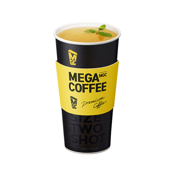 메가라는 이름답게 대용량 사이즈를 자랑하며, 아이스 테이크아웃 컵이 24oz(710mL) 정도. 메가리카노는 양이 무려 1L에 달한다.