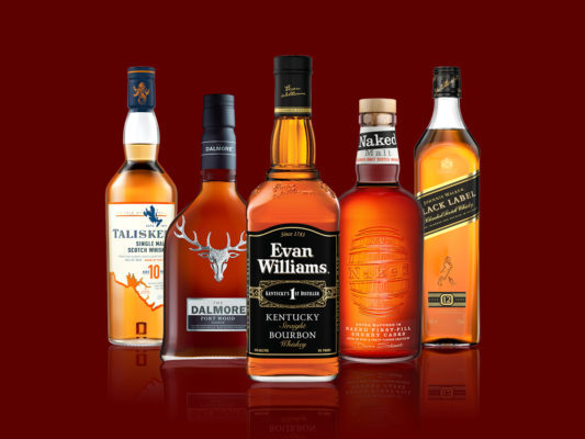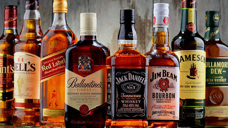 대표적인 블렌디드 위스키로는 한국에서도 명성이 높은 발렌타인, 조니 워커, 로얄 살루트, 시바스 리갈이 있다.