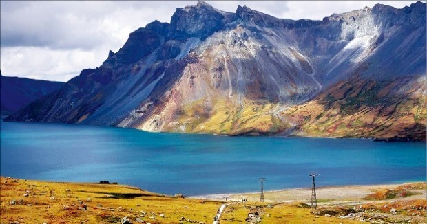 중국을 통해 관광이 가능한 남한 사람은 정상에 오를 수는 없고 천지 너머에서 바라볼 수만 있다.
