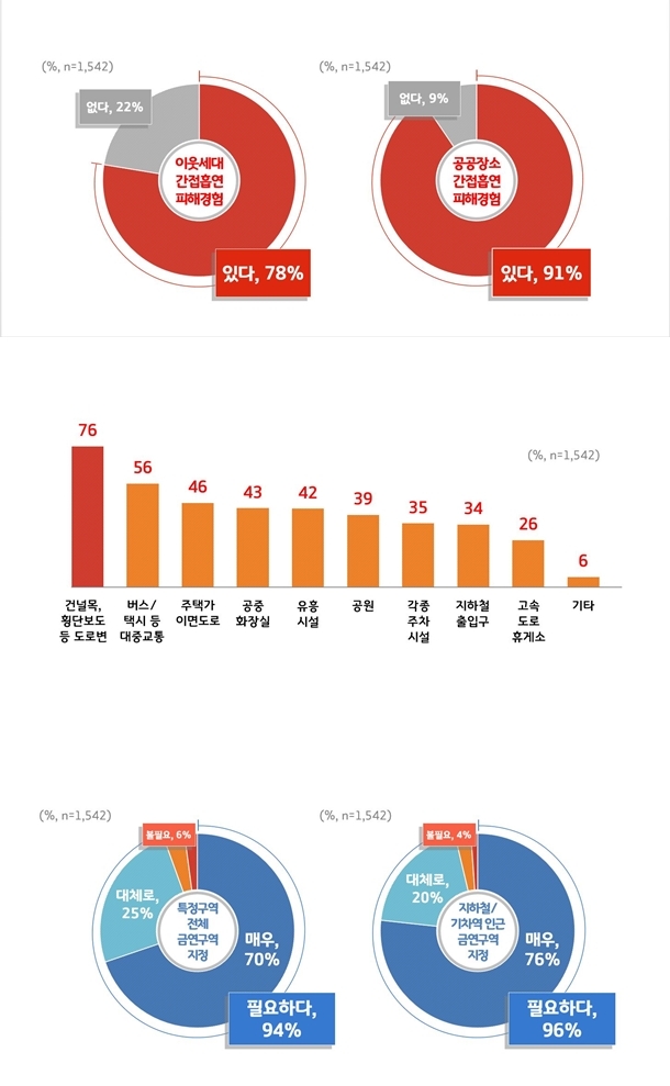 비흡연자 입장에서는 냄새가 코를 찌르는 수준으로 매우 불쾌한데다 유해물질까지 들이마시는 피해를 입게되니 당연히 기분이 갑자기 나빠지게 된다.