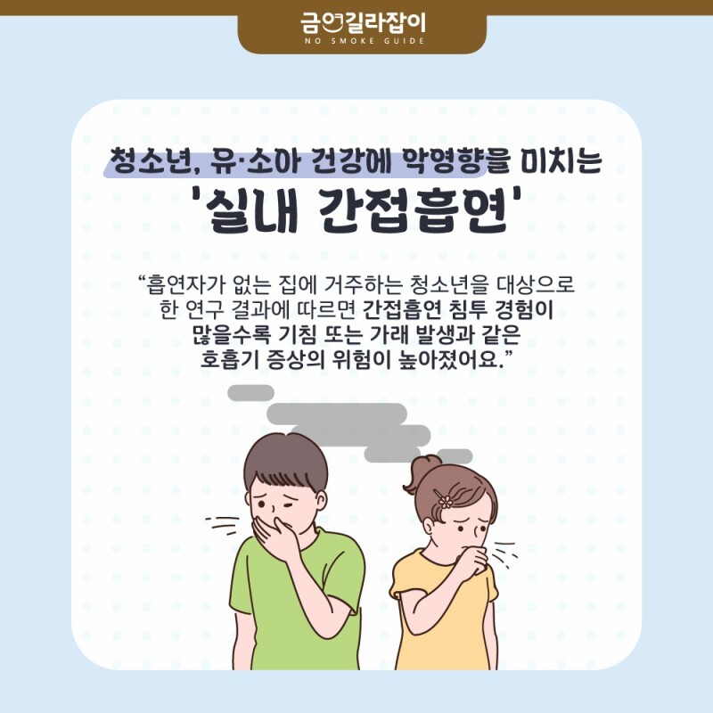 영유아들은 약물에 대한 감수성이 높기 때문에 유해물질에 노출되지 않도록 주의해야 하지만 부모나 보호자가 흡연자라면 문제가 크다.