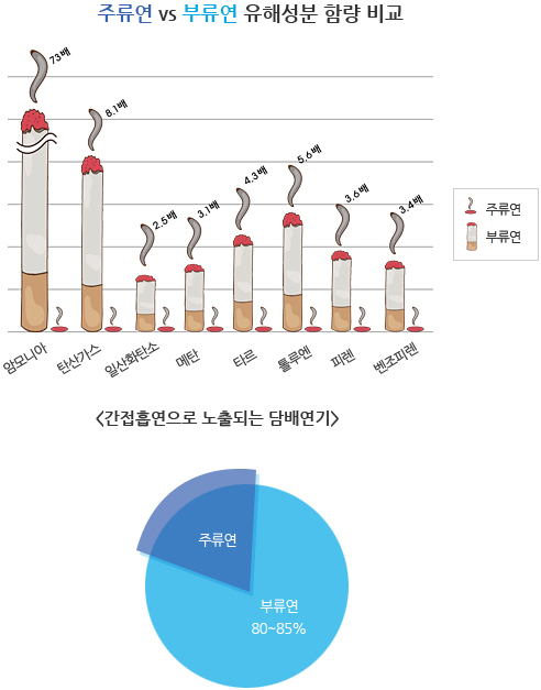 당연히 여과를 거치지 않은 비주류담배연기가 훨씬 유독하다.