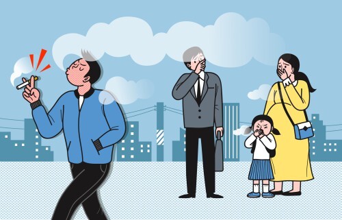 더 심한 경우에는 집안에서 담배 냄새 나는 게 싫다며 계단, 복도 등의 공공장소에서 피우는 사람도 있다.