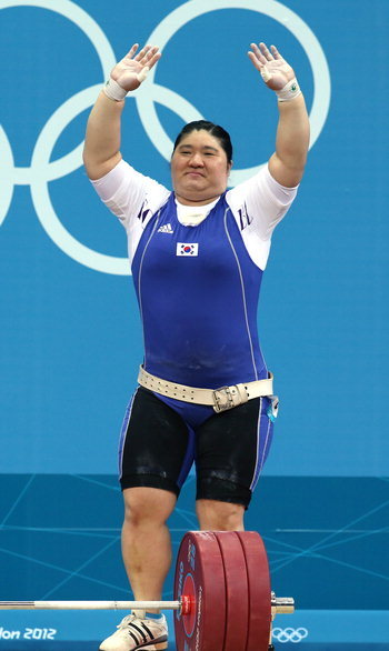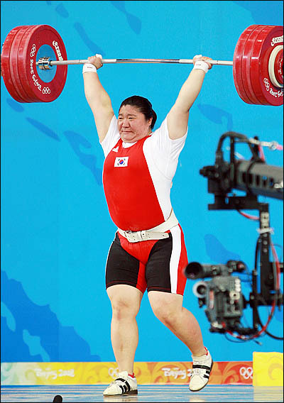 애초에 금메달 획득은 꿈도 못 꾸고 목표로 잡지도 못했기 때문에 장미란의 기록과 상관없이 좋아한 것이다.