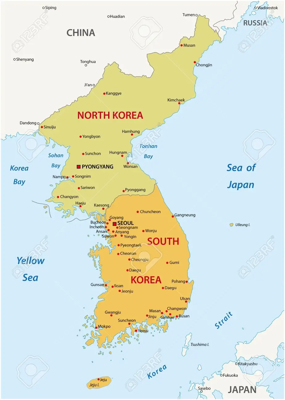 오늘날에는 휴전선을 기준으로 대한민국과 북한 두 나라가 위치하고 있다.