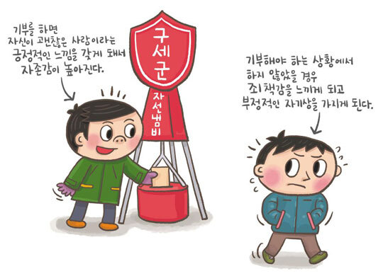 이는 대가를 바라면 안 되는 행위에 정신적 만족이 붙어 버리면, 어떠한 형식으로든 대가를 원하게 된다.