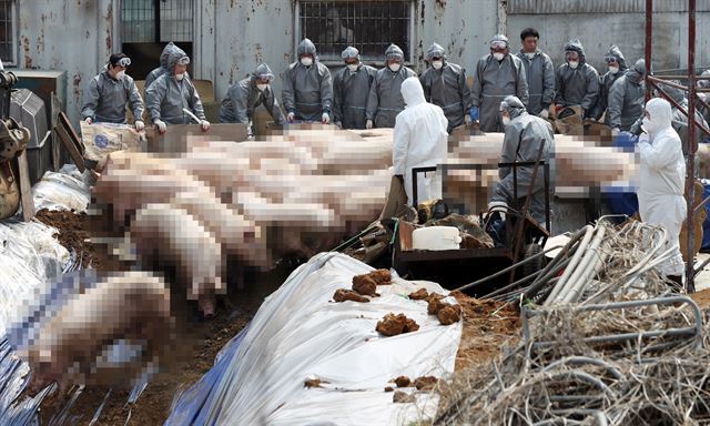 전북 김제서 구제역 발생...돼지 670마리 매몰 중그리고 2017년 2월, 충북 보은군과 전북 정읍시에서 구제역이 발생했다.