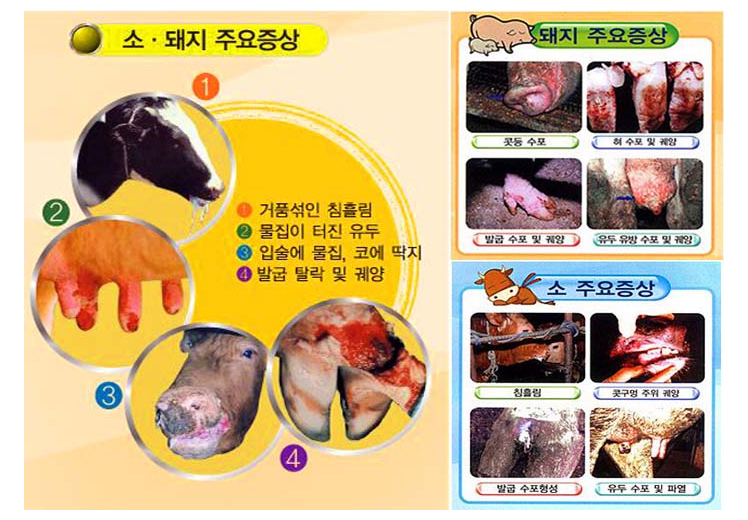 소, 돼지, 양, 염소, 사슴 등 각종 우제목 동물에서 발병되는 바이러스성 가축전염병을 말한다.