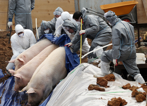 2010년 12월부터 이듬해 4월까지 우리나라에서는 모두 331만 8천 마리의 돼지가 살처분되었습니다.