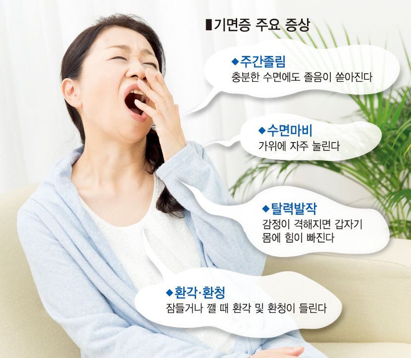 - 최소 3개월 동안 매일 반복되는 저항할 수 없는 졸음과 함께 수면발작이 일어난다.