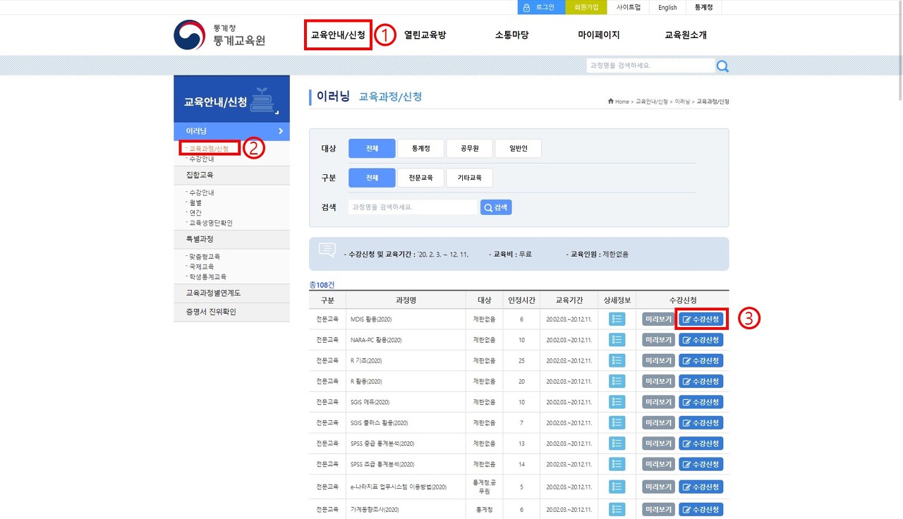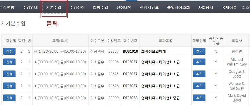 - 카테고리별로 분류된 과목을 찾아가서 클릭해서 신청