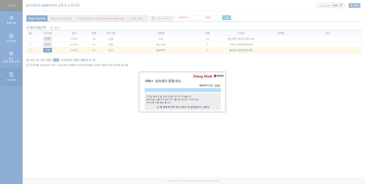 당연한 이야기지만 인기과목이나 모든 학생들이 필수로 들어야 하는 과목들(특히 교양과목)의 수강 가능인원은 한정되어 있고, 수강하고 싶어하는 사람은 많다.