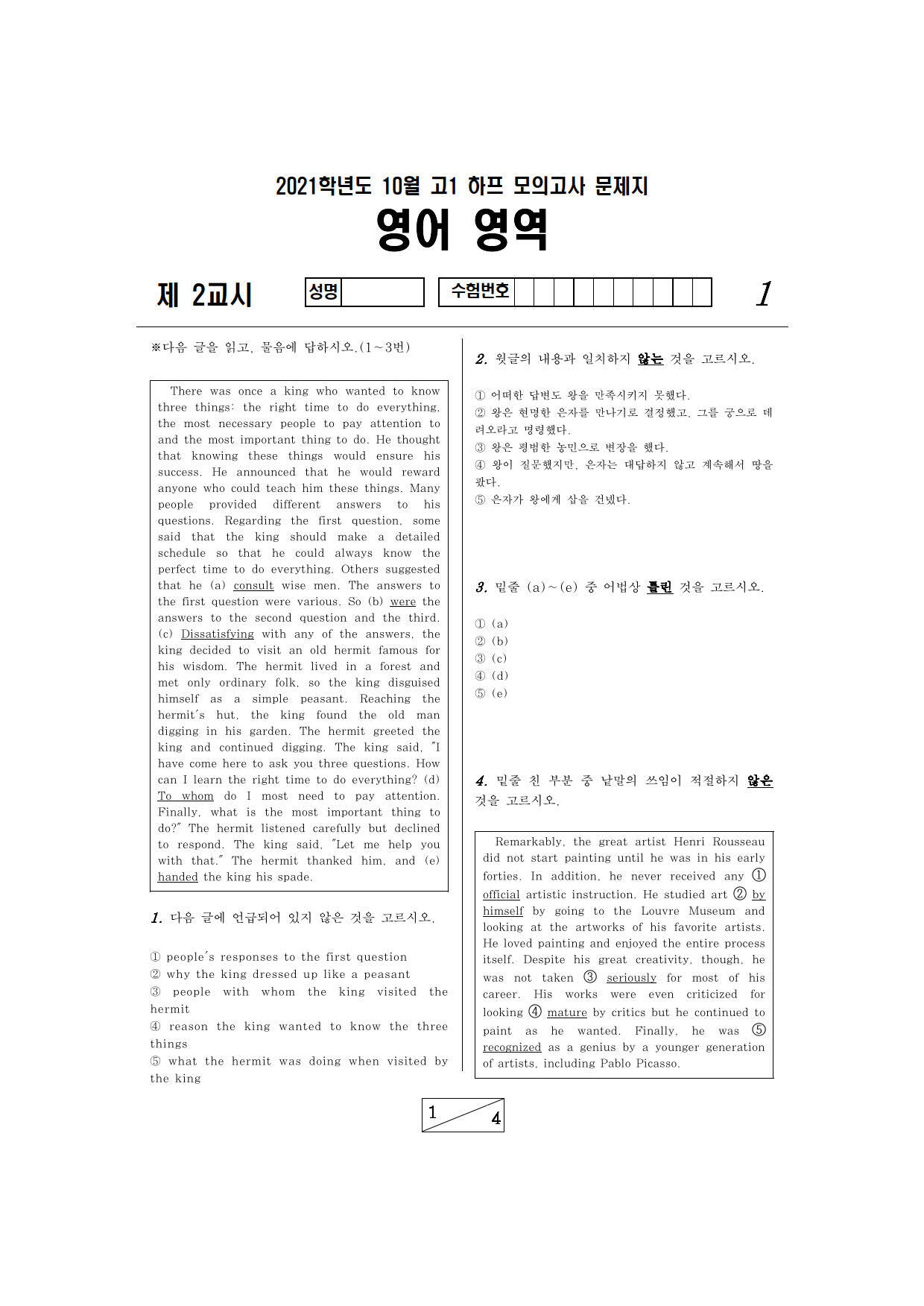 이 문서에서 다루는 모의고사 중 인지도가 있는 유일한 고1, 2용 문제를 제공하는 수능 모의고사이다.