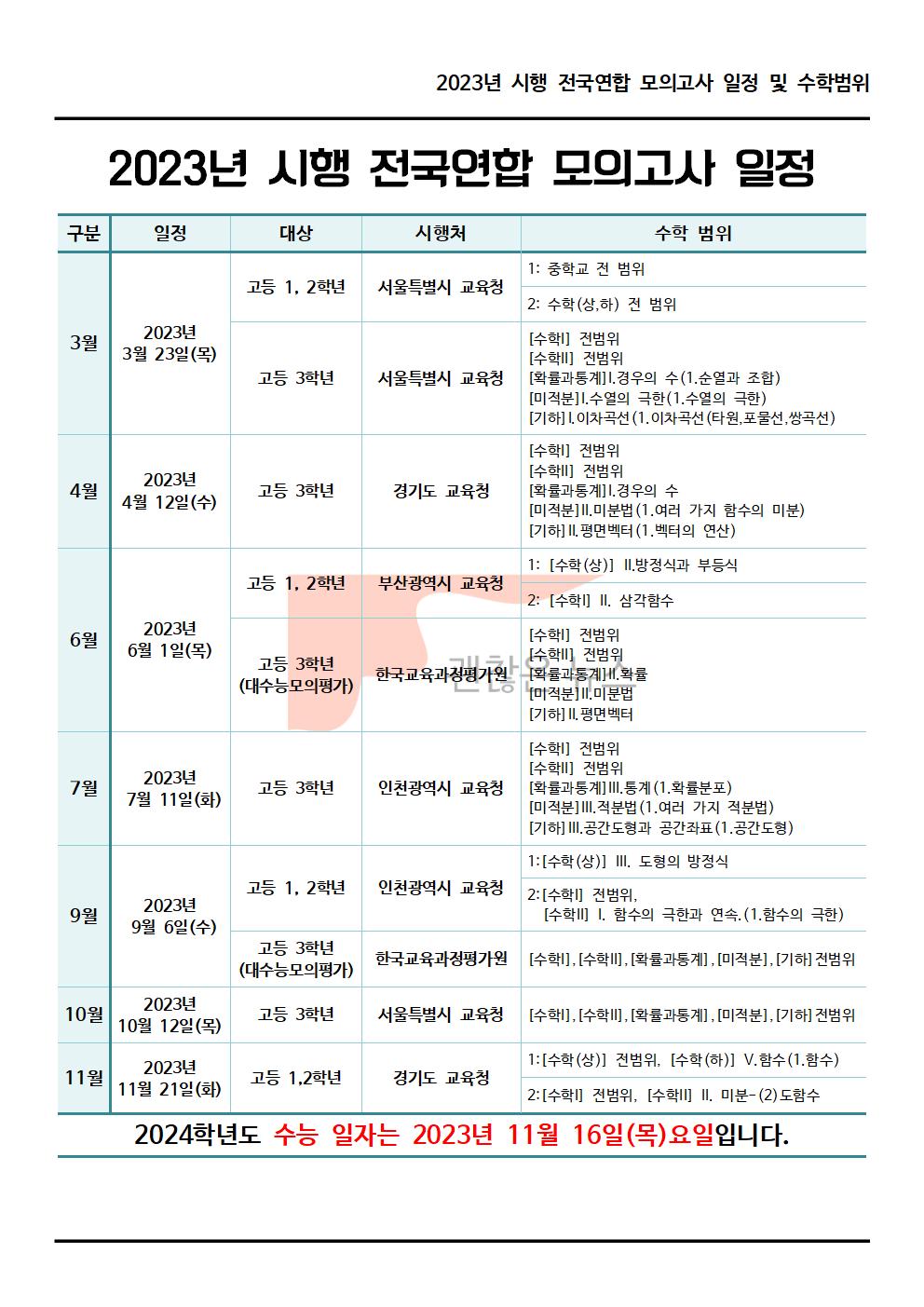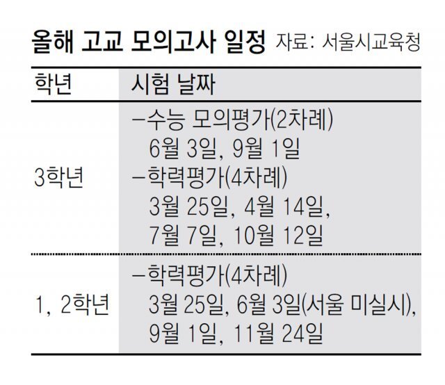 고1/고2는 3, 6, 9, 11월에 고3은 3, 4, 7, 10월에 시행한다.