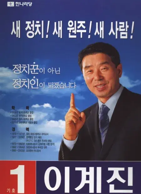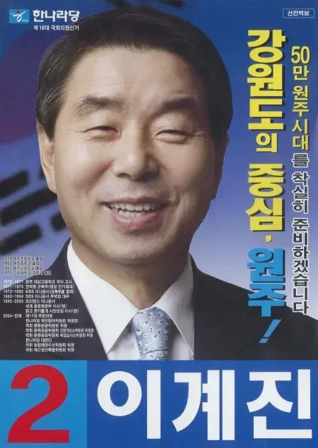 2004년 제17대 국회의원 선거에서 한나라당 후보로 강원도 원주시 선거구에 출마해 당선되었다.